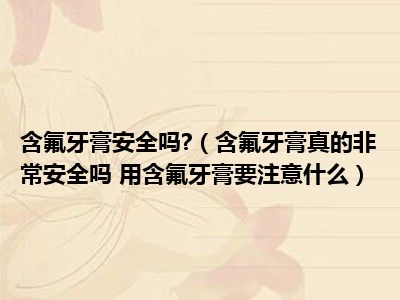目前大家应该是对含氟牙膏真的非常安全吗 用含氟牙膏要注意什么比较感兴趣的,所以今天小编CC就来为大家整理了一些关于含氟牙膏真的非常安全吗 用含氟牙膏要注意什么方面的相关知识来分享给大家,希望大家会喜欢哦。