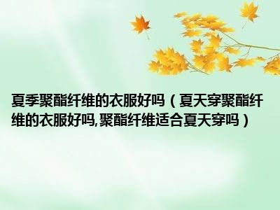 目前大家应该是对夏天穿聚酯纤维的衣服好吗,聚酯纤维适合夏天穿吗比较感兴趣的,所以今天小编CC就来为大家整理了一些关于夏天穿聚酯纤维的衣服好吗,聚酯纤维适合夏天穿吗方面的相关知识来分享给大家,希望大家会喜欢哦。