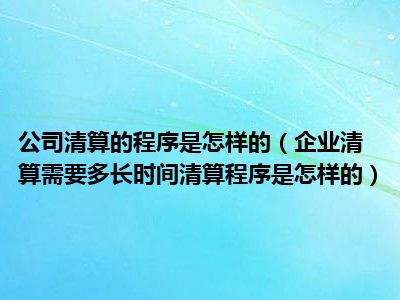 目前大家应该是对企业清算需要多长时间清算程序是怎样的比较感兴趣的,所以今天CC就来为大家整理了一些关于企业清算需要多长时间清算程序是怎样的方面的相关知识来分享给大家,希望大家会喜欢哦。