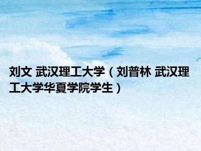 导读 目前是有很多朋友们对于刘普林 武汉理工大学华夏学院学生这个信息比较感兴趣,那么小编也是收集了一些刘普林 武汉理工大学华夏学院学生相...