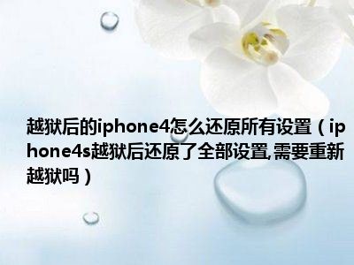 相信目前很多小伙伴对于iphone4s越狱后还原了全部设置,需要重新越狱吗都比较感兴趣,那么小编今天在网上也是收集了一些与iphone4s越狱后还原了全部设置,需要重新越狱吗相关的信息来分享给大家,希望能够帮助到大家哦。