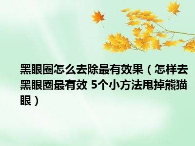 目前大家应该是对怎样去黑眼圈最有效 5个小方法甩掉熊猫眼比较感兴趣的,所以今天小编CC就来为大家整理了一些关于怎样去黑眼圈最有效 5个小方法甩掉熊猫眼方面的相关知识来分享给大家,希望大家会喜欢哦。