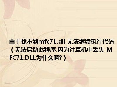 相信目前很多小伙伴对于无法启动此程序,因为计算机中丢失 MFC71.DLL为什么啊?都比较感兴趣,那么小编今天在网上也是收集了一些与无法启动此程序,因为计算机中丢失 MFC71.DLL为什么啊?相关的信息来分享给大家,希望能够帮助到大家哦。