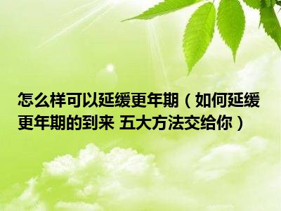 导读 目前大家应该是对如何延缓更年期的到来 五大方法交给你比较感兴趣的,所以今天小编CC就来为大家整理了一些关于如何延缓更年期的到来 五大...