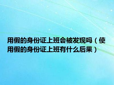目前大家应该是对使用假的身份证上班有什么后果比较感兴趣的,所以今天CC就来为大家整理了一些关于使用假的身份证上班有什么后果方面的相关知识来分享给大家,希望大家会喜欢哦。