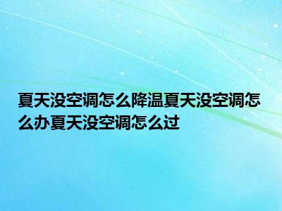 目前大家应该是对夏天没有空调怎么降温,夏天没有空调怎么办,没有空调夏天怎么过比较感兴趣的,所以今天小编CC就来为大家整理了一些关于夏天没有空调怎么降温,夏天没有空调怎么办,没有空调夏天怎么过方面的相关知识来分享给大家,希望大家会喜欢哦。