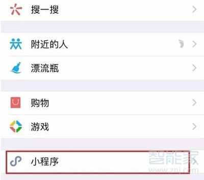 打开微信,点击“发现”,再找到然后点击“小程序”