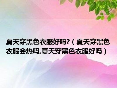 目前大家应该是对夏天穿黑色衣服会热吗,夏天穿黑色衣服好吗比较感兴趣的,所以今天小编CC就来为大家整理了一些关于夏天穿黑色衣服会热吗,夏天穿黑色衣服好吗方面的相关知识来分享给大家,希望大家会喜欢哦。