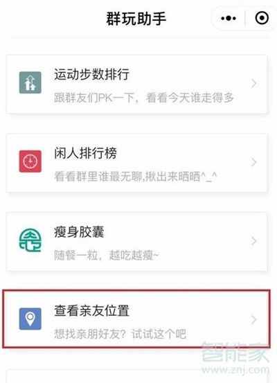 点击小程序“群玩助手”,找到并点击“查看亲友位置”