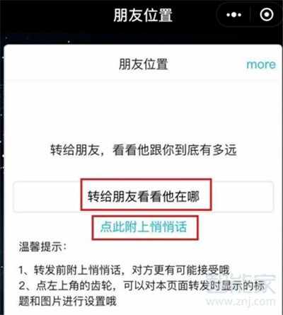 对微信进行授权管理,点击“转给朋友看看他在哪”