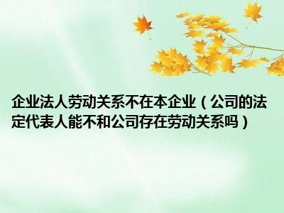 目前大家应该是对公司的法定代表人能不和公司存在劳动关系吗比较感兴趣的,所以今天CC就来为大家整理了一些关于公司的法定代表人能不和公司存在劳动关系吗方面的相关知识来分享给大家,希望大家会喜欢哦。