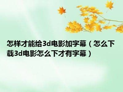 相信目前很多小伙伴对于怎么下载3d电影怎么下才有字幕都比较感兴趣,那么小编今天在网上也是收集了一些与怎么下载3d电影怎么下才有字幕相关的信息来分享给大家,希望能够帮助到大家哦。