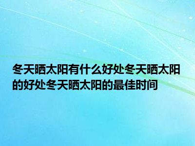 目前大家应该是对冬天晒太阳有什么好处,冬天晒太阳的好处,冬天晒太阳的最佳时间比较感兴趣的,所以今天小编CC就来为大家整理了一些关于冬天晒太阳有什么好处,冬天晒太阳的好处,冬天晒太阳的最佳时间方面的相关知识来分享给大家,希望大家会喜欢哦。