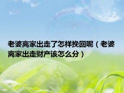 目前大家应该是对老婆离家出走财产该怎么分比较感兴趣的,所以今天CC就来为大家整理了一些关于老婆离家出走财产该怎么分方面的相关知识来分享给大家,希望大家会喜欢哦。