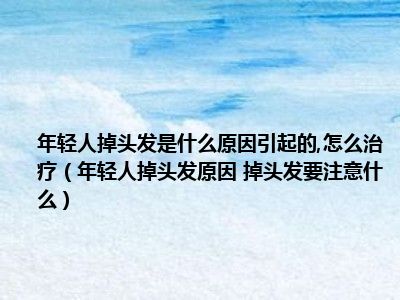导读 目前大家应该是对年轻人掉头发原因 掉头发要注意什么比较感兴趣的,所以今天小编CC就来为大家整理了一些关于年轻人掉头发原因 掉头发要注...