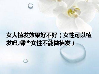 目前大家应该是对女性可以植发吗,哪些女性不能做植发比较感兴趣的,所以今天小编CC就来为大家整理了一些关于女性可以植发吗,哪些女性不能做植发方面的相关知识来分享给大家,希望大家会喜欢哦。