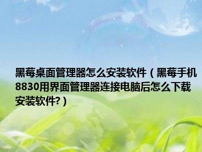 相信目前很多小伙伴对于黑莓手机8830用界面管理器连接电脑后怎么下载安装软件?都比较感兴趣,那么小编今天在网上也是收集了一些与黑莓手机8830用界面管理器连接电脑后怎么下载安装软件?相关的信息来分享给大家,希望能够帮助到大家哦。