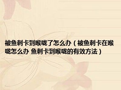 目前大家应该是对被鱼刺卡在喉咙怎么办 鱼刺卡到喉咙的有效方法比较感兴趣的,所以今天小编CC就来为大家整理了一些关于被鱼刺卡在喉咙怎么办 鱼刺卡到喉咙的有效方法方面的相关知识来分享给大家,希望大家会喜欢哦。