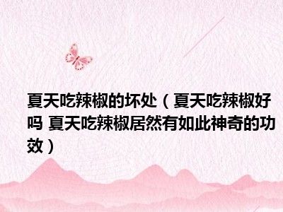 目前大家应该是对夏天吃辣椒好吗 夏天吃辣椒居然有如此神奇的功效比较感兴趣的,所以今天小编CC就来为大家整理了一些关于夏天吃辣椒好吗 夏天吃辣椒居然有如此神奇的功效方面的相关知识来分享给大家,希望大家会喜欢哦。