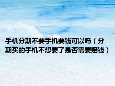 目前大家应该是对分期买的手机不想要了是否需要赔钱比较感兴趣的,所以今天CC就来为大家整理了一些关于分期买的手机不想要了是否需要赔钱方面的相关知识来分享给大家,希望大家会喜欢哦。