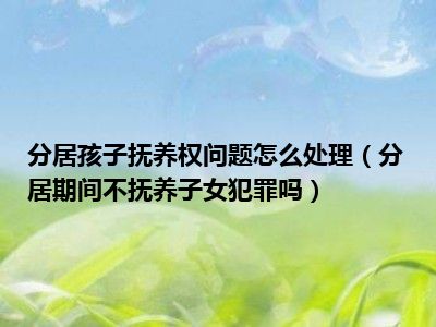 目前大家应该是对分居期间不抚养子女,犯罪吗比较感兴趣的,所以今天CC就来为大家整理了一些关于分居期间不抚养子女,犯罪吗方面的相关知识来分享给大家,希望大家会喜欢哦。