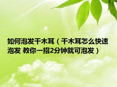 目前大家应该是对干木耳怎么快速泡发 教你一招2分钟就可泡发比较感兴趣的,所以今天小编CC就来为大家整理了一些关于干木耳怎么快速泡发 教你一招2分钟就可泡发方面的相关知识来分享给大家,希望大家会喜欢哦。