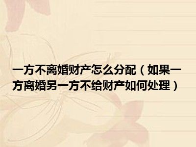 目前大家应该是对如果一方离婚,另一方不给财产,如何处理比较感兴趣的,所以今天CC就来为大家整理了一些关于如果一方离婚,另一方不给财产,如何处理方面的相关知识来分享给大家,希望大家会喜欢哦。