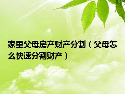 父母快速分割财产应当是夫妻双方协议分割;如果协议不成的,应起诉分割,人民法院根据财产的具体情况,按照照顾子女、女方和无过错方权益的原则判决。属于男女双方的共有财产才能分割。