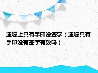 导读目前大家应该是对遗嘱只有手印没有签字有效吗比较感兴趣的,所以今天CC就来为大家整理了一些关于遗嘱只有手印没有签字有效吗方面的相关知识...
