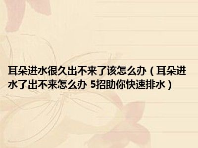 目前大家应该是对耳朵进水了出不来怎么办 5招助你快速排水比较感兴趣的,所以今天小编CC就来为大家整理了一些关于耳朵进水了出不来怎么办 5招助你快速排水方面的相关知识来分享给大家,希望大家会喜欢哦。