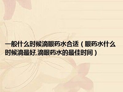 目前大家应该是对眼药水什么时候滴最好,滴眼药水的最佳时间比较感兴趣的,所以今天小编CC就来为大家整理了一些关于眼药水什么时候滴最好,滴眼药水的最佳时间方面的相关知识来分享给大家,希望大家会喜欢哦。