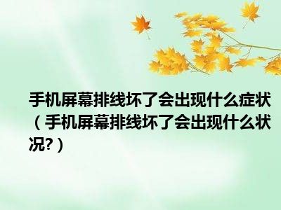 相信目前很多小伙伴对于手机屏幕排线坏了会出现什么状况?都比较感兴趣,那么小编今天在网上也是收集了一些与手机屏幕排线坏了会出现什么状况?相关的信息来分享给大家,希望能够帮助到大家哦。