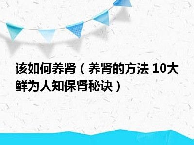 目前大家应该是对养肾的方法 10大鲜为人知保肾秘诀比较感兴趣的,所以今天小编CC就来为大家整理了一些关于养肾的方法 10大鲜为人知保肾秘诀方面的相关知识来分享给大家,希望大家会喜欢哦。