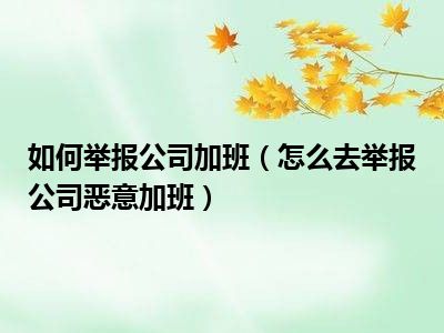 目前大家应该是对怎么去举报公司恶意加班比较感兴趣的,所以今天CC就来为大家整理了一些关于怎么去举报公司恶意加班方面的相关知识来分享给大家,希望大家会喜欢哦。