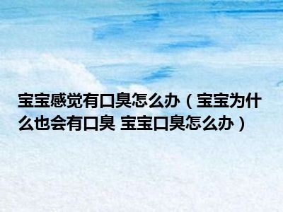目前大家应该是对宝宝为什么也会有口臭 宝宝口臭怎么办比较感兴趣的,所以今天小编CC就来为大家整理了一些关于宝宝为什么也会有口臭 宝宝口臭怎么办方面的相关知识来分享给大家,希望大家会喜欢哦。