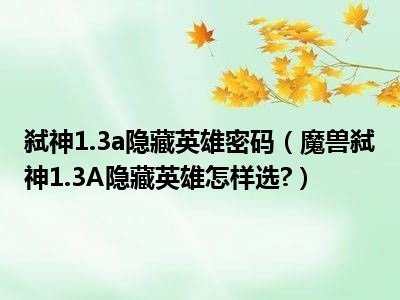 相信目前很多小伙伴对于魔兽弑神1.3A隐藏英雄怎样选?都比较感兴趣,那么小编今天在网上也是收集了一些与魔兽弑神1.3A隐藏英雄怎样选?相关的信息来分享给大家,希望能够帮助到大家哦。