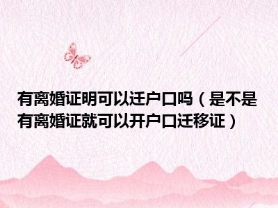 目前大家应该是对是不是有离婚证就可以开户口迁移证比较感兴趣的,所以今天CC就来为大家整理了一些关于是不是有离婚证就可以开户口迁移证方面的相关知识来分享给大家,希望大家会喜欢哦。