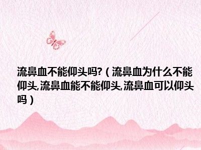 目前大家应该是对流鼻血为什么不能仰头,流鼻血能不能仰头,流鼻血可以仰头吗比较感兴趣的,所以今天小编CC就来为大家整理了一些关于流鼻血为什么不能仰头,流鼻血能不能仰头,流鼻血可以仰头吗方面的相关知识来分享给大家,希望大家会喜欢哦。
