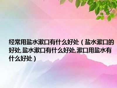 目前大家应该是对盐水漱口的好处,盐水漱口有什么好处,漱口用盐水有什么好处比较感兴趣的,所以今天小编CC就来为大家整理了一些关于盐水漱口的好处,盐水漱口有什么好处,漱口用盐水有什么好处方面的相关知识来分享给大家,希望大家会喜欢哦。