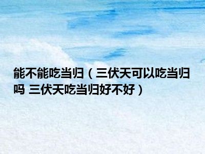 目前大家应该是对三伏天可以吃当归吗 三伏天吃当归好不好比较感兴趣的,所以今天小编CC就来为大家整理了一些关于三伏天可以吃当归吗 三伏天吃当归好不好方面的相关知识来分享给大家,希望大家会喜欢哦。