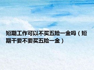 目前大家应该是对短期干要不要买五险一金比较感兴趣的,所以今天CC就来为大家整理了一些关于短期干要不要买五险一金方面的相关知识来分享给大家,希望大家会喜欢哦。