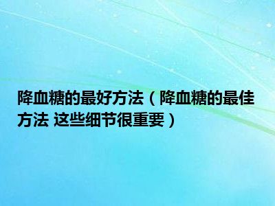 目前大家应该是对降血糖的最佳方法 这些细节很重要比较感兴趣的,所以今天小编CC就来为大家整理了一些关于降血糖的最佳方法 这些细节很重要方面的相关知识来分享给大家,希望大家会喜欢哦。