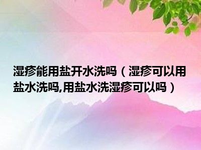 目前大家应该是对湿疹可以用盐水洗吗,用盐水洗湿疹可以吗比较感兴趣的,所以今天小编CC就来为大家整理了一些关于湿疹可以用盐水洗吗,用盐水洗湿疹可以吗方面的相关知识来分享给大家,希望大家会喜欢哦。