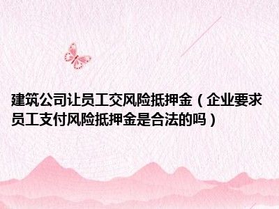 导读目前大家应该是对企业要求员工支付风险抵押金是合法的吗比较感兴趣的,所以今天CC就来为大家整理了一些关于企业要求员工支付风险抵押金是合...