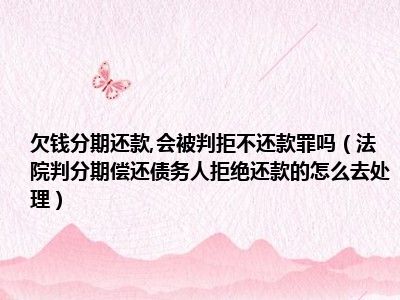 目前大家应该是对法院判分期偿还债务人拒绝还款的怎么去处理比较感兴趣的,所以今天CC就来为大家整理了一些关于法院判分期偿还债务人拒绝还款的怎么去处理方面的相关知识来分享给大家,希望大家会喜欢哦。