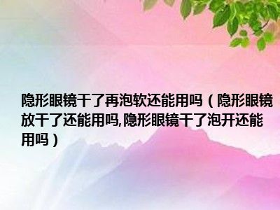 目前大家应该是对隐形眼镜放干了还能用吗,隐形眼镜干了泡开还能用吗比较感兴趣的,所以今天小编CC就来为大家整理了一些关于隐形眼镜放干了还能用吗,隐形眼镜干了泡开还能用吗方面的相关知识来分享给大家,希望大家会喜欢哦。