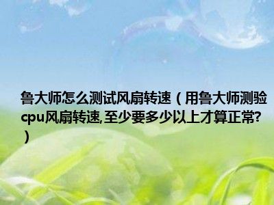 相信目前很多小伙伴对于用鲁大师测验cpu风扇转速,至少要多少以上才算正常?都比较感兴趣,那么小编今天在网上也是收集了一些与用鲁大师测验cpu风扇转速,至少要多少以上才算正常?相关的信息来分享给大家,希望能够帮助到大家哦。