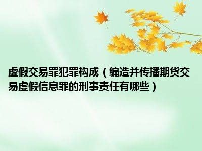 目前大家应该是对编造并传播期货交易虚假信息罪的刑事责任有哪些比较感兴趣的,所以今天CC就来为大家整理了一些关于编造并传播期货交易虚假信息罪的刑事责任有哪些方面的相关知识来分享给大家,希望大家会喜欢哦。