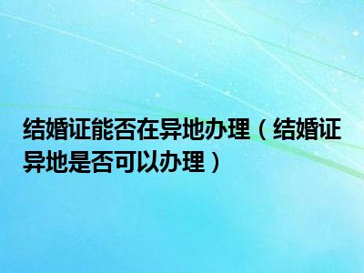 目前大家应该是对结婚证异地是否可以办理比较感兴趣的,所以今天CC就来为大家整理了一些关于结婚证异地是否可以办理方面的相关知识来分享给大家,希望大家会喜欢哦。