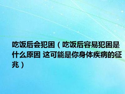 目前大家应该是对吃饭后容易犯困是什么原因 这可能是你身体疾病的征兆比较感兴趣的,所以今天小编CC就来为大家整理了一些关于吃饭后容易犯困是什么原因 这可能是你身体疾病的征兆方面的相关知识来分享给大家,希望大家会喜欢哦。